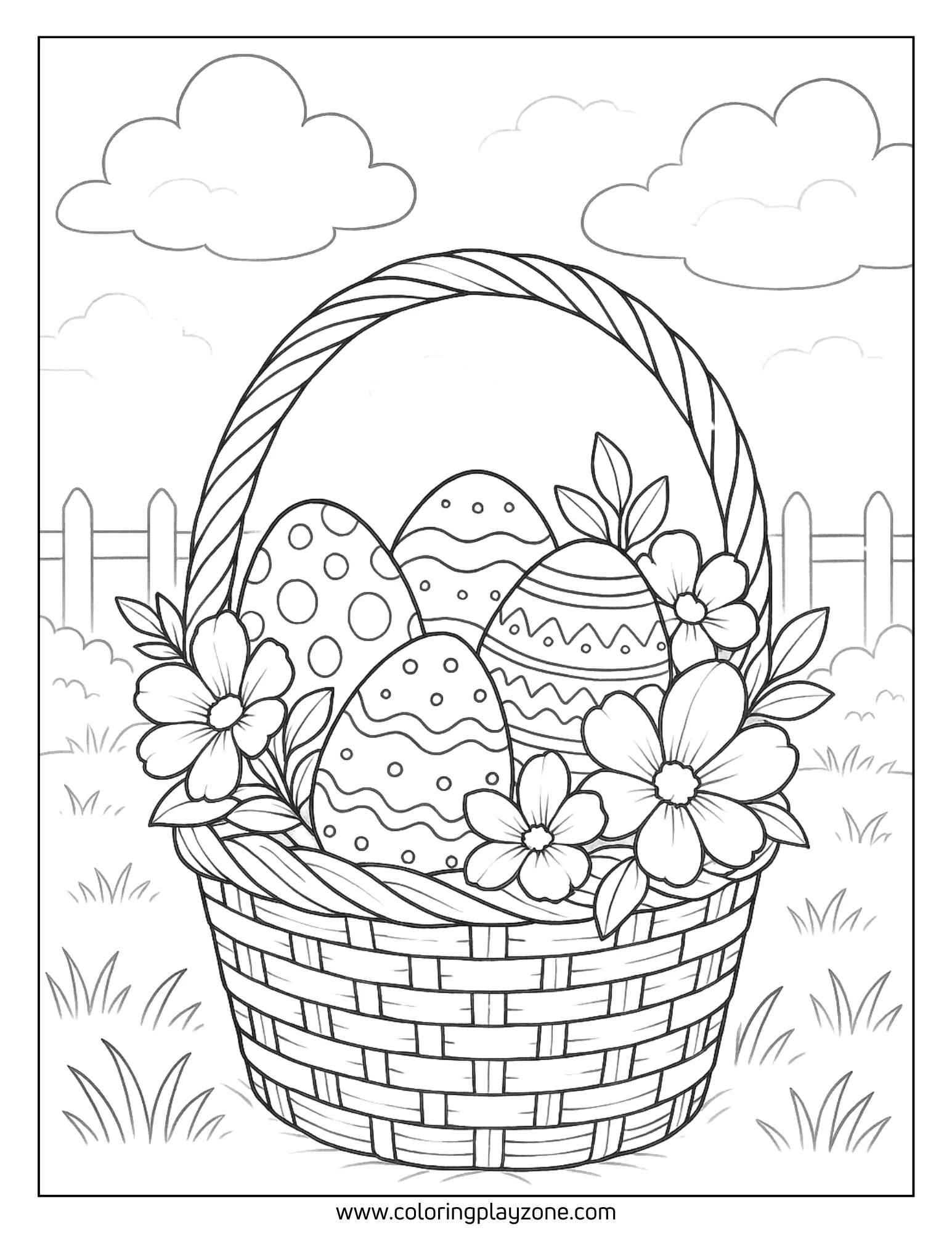 Happy Easter Egg in Basket Coloring Pages