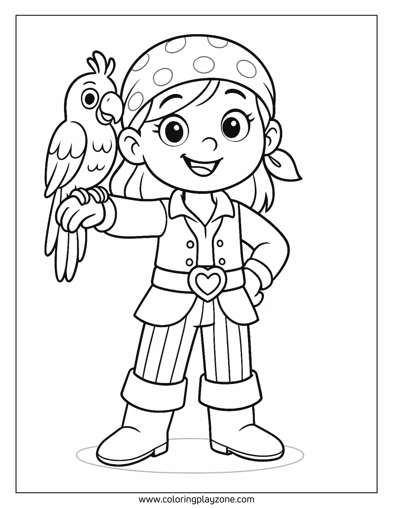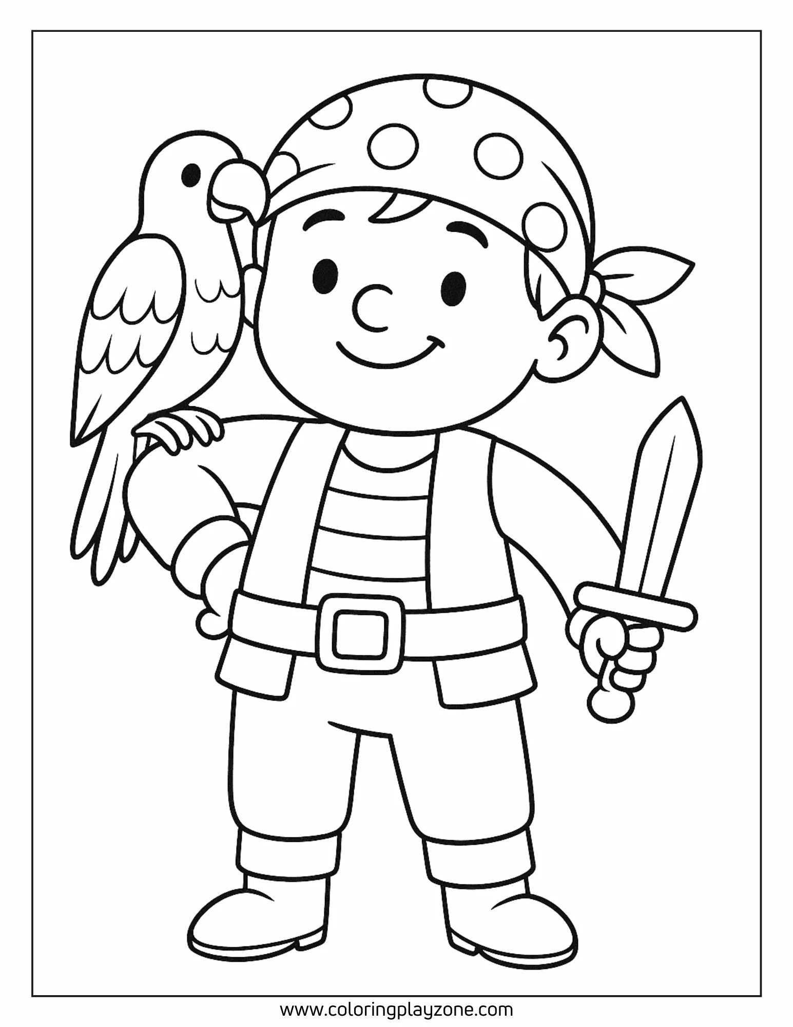 Friendly Pirate Crew Member with Parrot Coloring Sheet
