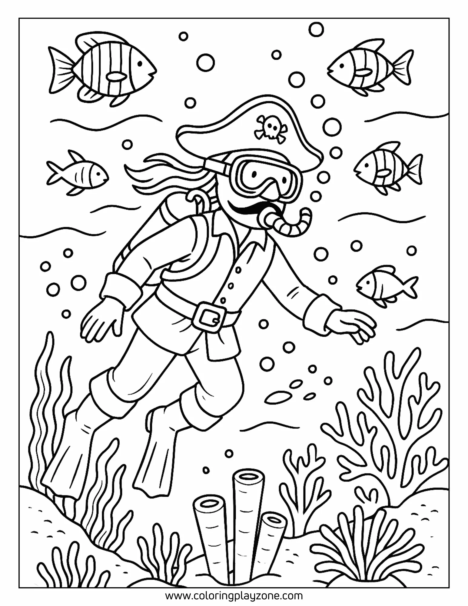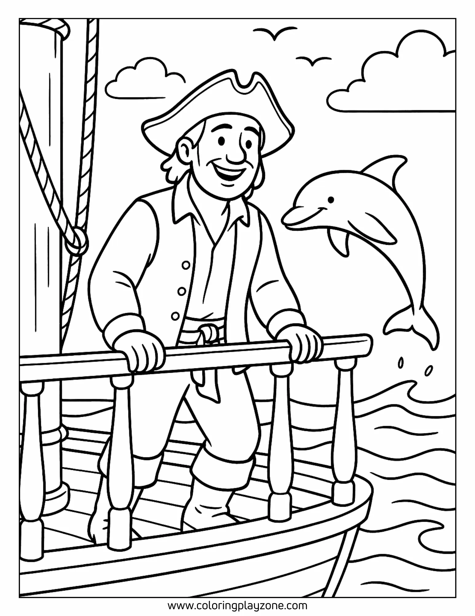 - Pirate with Sea Animals Coloring Pages